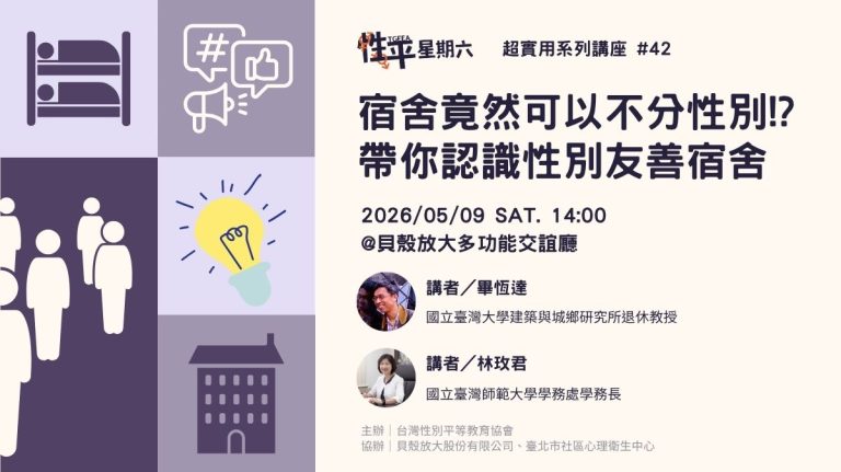 這場講座邀請到走訪了全台 20 所大專校院的畢恆達、林玫君教授,帶你從政策、申請流程、空間設計、管理與學生自治四個面向,認識性別友善宿舍怎麼做、為什麼需要,以及友善校園空間的可能方向。
