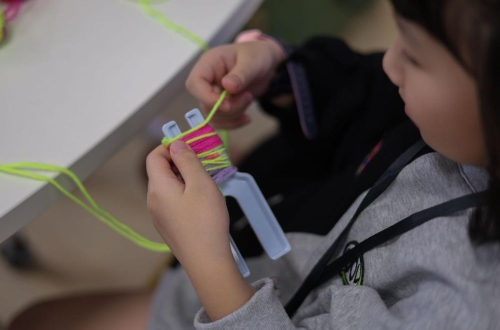 活動的尾聲,老師發下五顏六色的毛線球,讓孩子們根據自己的家庭配方牌卡,將家庭元素與色彩具象化,創作屬於自己的「毛球小夥伴」。在這個活動中,孩子除了認識多元家庭的存在,也開始思考:什麼樣的味道,會讓自己感到被愛與被理解。