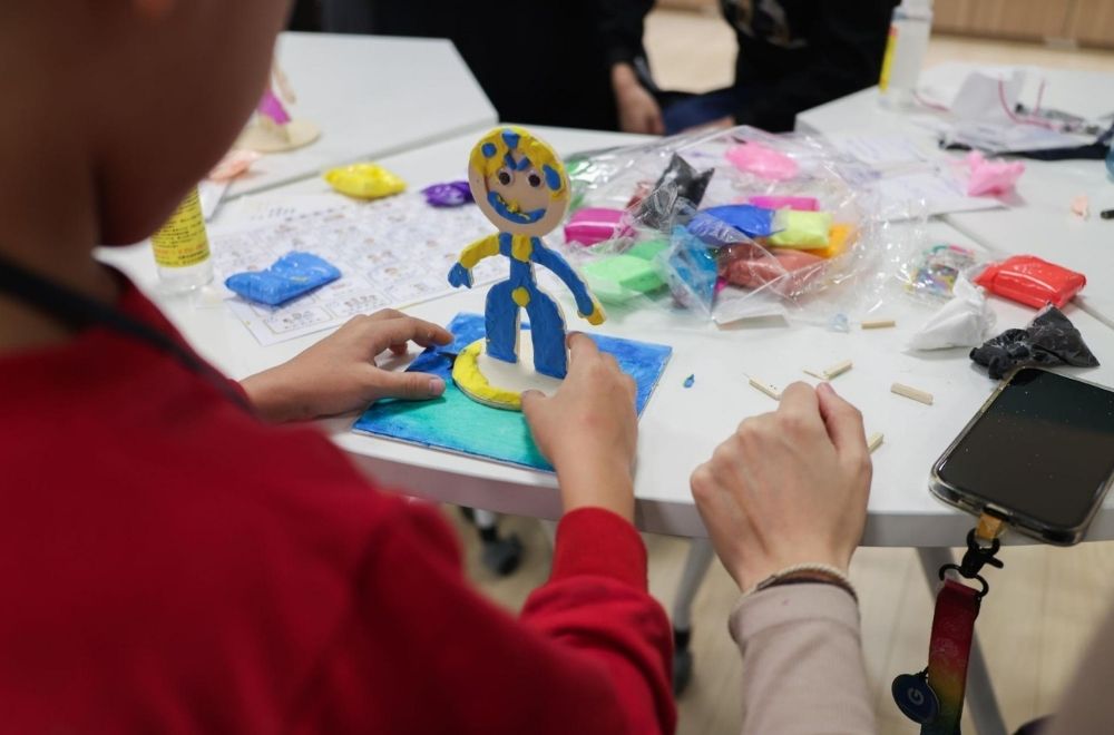 課程的最後,進行了「製作獨特的自己」創作活動。老師準備了不同造型的木牌,讓孩子們自由選擇,並用輕黏土裝飾出代表自己的模樣,每一件作品都展現出獨一無二的風格。