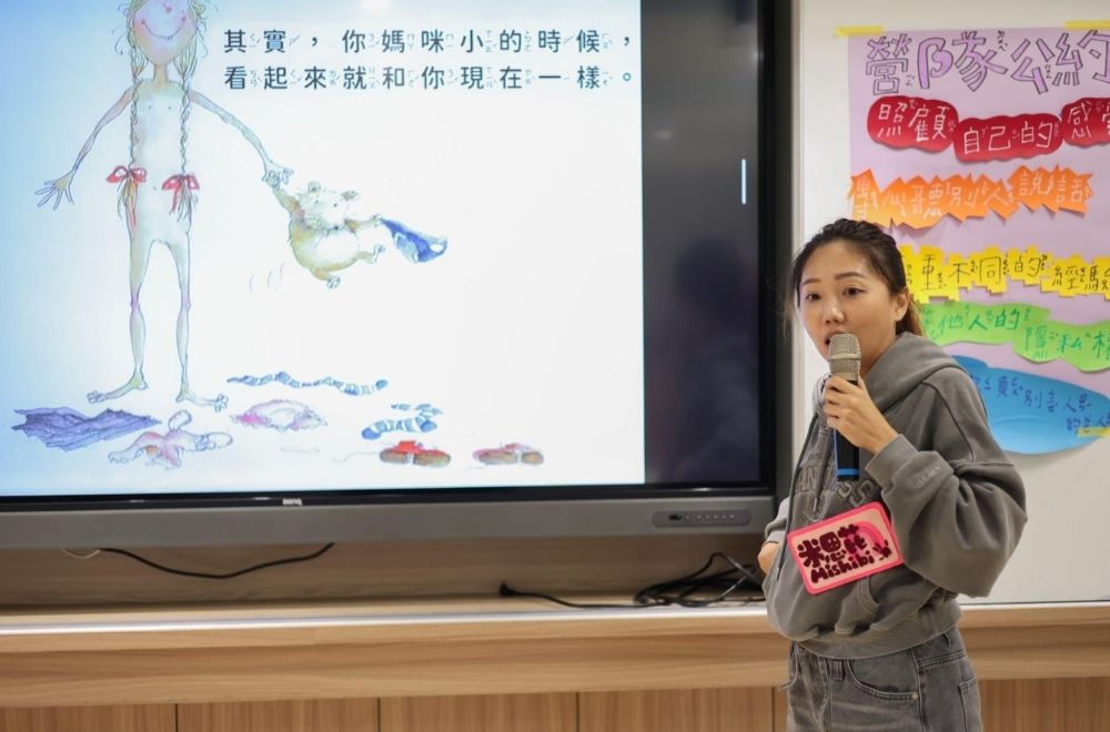 在說完故事後,老師進一步說明從嬰兒期、幼兒期、兒童期到青少年期的發展,也談到青春期可能經歷的身體變化與情緒起伏。他提醒大家,每個人的成長速度都不一樣,出現變化的時間也不同。如果對自己的身體或感受有疑問,都可以和身邊信任的大人討論。
