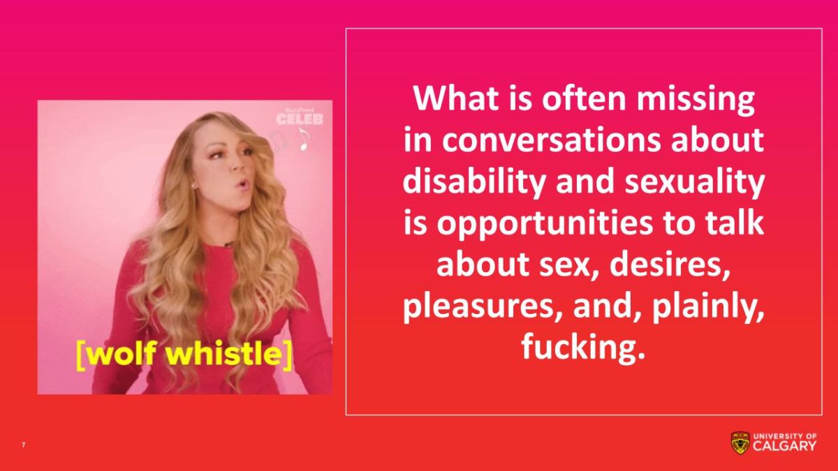 在這場以「障礙與性的交織關係」為題的分享裡,來自加拿大卡加利大學(University of Calgary)的 Alan Martino 副教授一開場便點破社會的深層常規,即障礙者的性往往被視為一種禁忌,他們會被當作「去性化」的孩子,需要加以保護與管理。但同時,社會又將某些障礙者視為「過度沉迷性」的個體,因而必須加以限制。